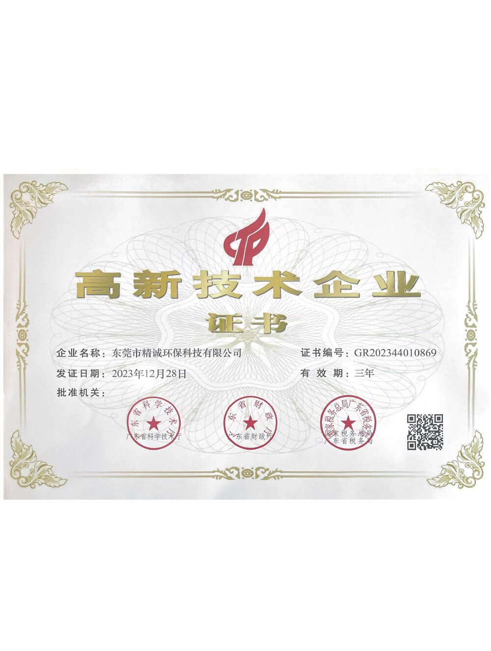- 2008年:戰略升級,遷址東莞大朗,正式更名為東莞市精誠環保科技有限公司。